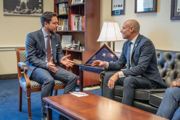 أكد سمو الأمير الحسين بن عبدالله الثاني، ولي العهد، خلال لقاءات عقدت في واشنطن، اليوم الخميس، مع عدد من أعضاء الكونغرس الأمريكي، أن الأردن يبذل كل الجهود لتحقيق التهدئة في المنطقة واستعادة الاستقرار فيها، محذرا من خطورة خطط التهجير التي تستهدف سلب الشعب الفلسطيني حقوقه المشروعة، إذ شدد سموه على أن حل الدولتين هو السبيل الوحيد لتحقيق السلام.