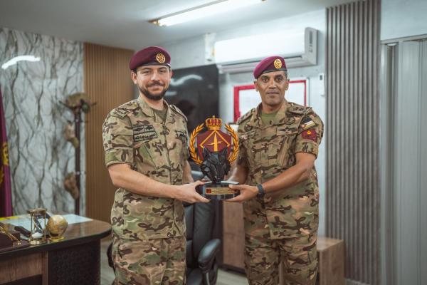 وكان في استقبال سموه لدى وصوله موقع التمرين، رئيس هيئة الأركان المشتركة اللواء الركن يوسف أحمد الحنيطي، وقائد اللواء، وعدد من كبار ضباط القوات المسلحة الأردنية – الجيش العربي.
