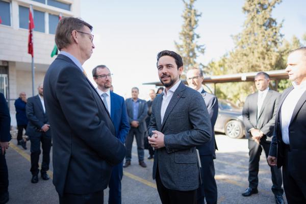 ورافق سمو ولي العهد خلال الزيارة، وزير العمل رئيس مجلس إدارة مؤسسة التدريب المهني الدكتور خالد البكار، والسفير الألماني في الأردن الدكتور بيرترام فون مولتكه، ومدير مكتب سمو ولي العهد الدكتور زيد البقاعين، ومدير بنك التنمية الألماني في الأردن الدكتور ماثياس شميدت - روزن.