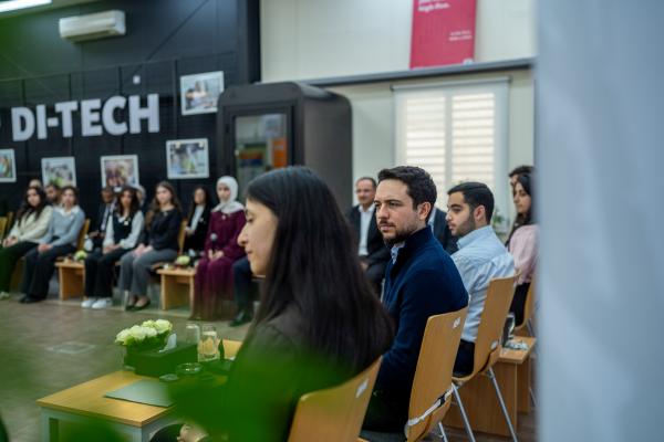 The Crown Prince was briefed by GJU President Ala’aldeen Halhouli and a number of academic staff and students on DI-TECH’s role in supporting the entrepreneurship and innovation ecosystem, and equipping students with practical skills relevant to labour market needs.