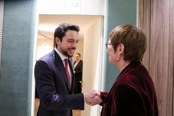 ركز لقاء سمو الأمير الحسين بن عبدﷲ الثاني ولي العهد، برئيسة البنك الأوروبي لإعادة الإعمار والتنمية أوديل رينو باسو، اليوم الخميس، على سبل توسيع الشراكة بين الجانبين.