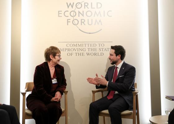وثمن سموه، خلال اللقاء الذي عقد على هامش أعمال المنتدى الاقتصادي العالمي في دافوس بسويسرا، جهود البنك في دعم مشاريع تنموية في الأردن، لافتا إلى أهمية توسيع الشراكة بين البنك والقطاع الخاص.
