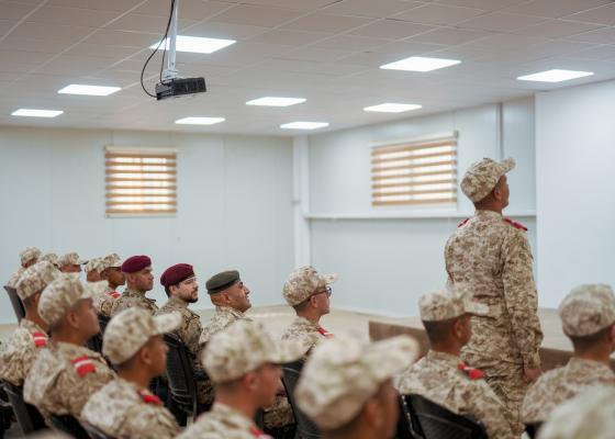 واستمع سمو ولي العهد، خلال الزيارة، إلى إيجاز قدمه القائمون على المركز حول مراحل التدريب الأساسية، التي تهدف إلى إعداد المكلفين وتأهيلهم بدنيا وعسكريا.