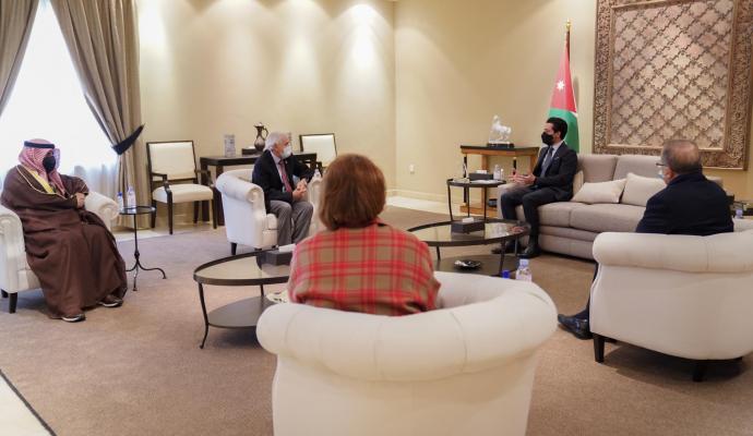 استقبل سمو الأمير الحسين بن عبدالله الثاني، ولي العهد، في قصر الحسينية اليوم الأحد، رئيس مجلس إدارة جمعية الهلال الأحمر الكويتي الدكتور هلال الساير.