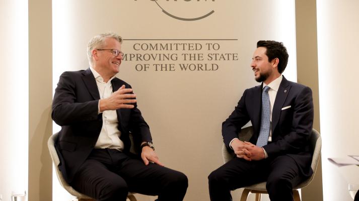 وثمن سموه، خلال اللقاء الذي عقد على هامش المنتدى الاقتصادي العالمي بمدينة دافوس السويسرية، دعم البنك للأردن في تنفيذ مشاريع حيوية، خاصة مشروع تحلية ونقل المياه من العقبة إلى عمان (مشروع الناقل الوطني للمياه).